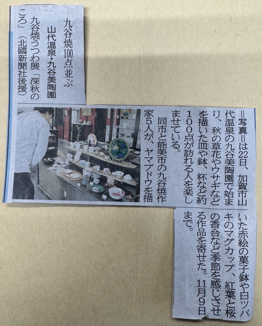 九谷美陶園では、新進の作家を中心に企画展を11月9日まで行います。