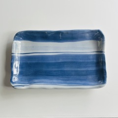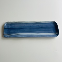 【多田鐵男】染付縞文様長方皿(細長)