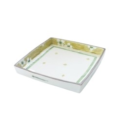 【瑛生】 白花文様足付六寸角皿