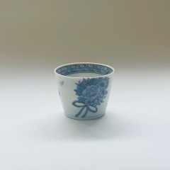 【瑛生】 染付草花文様文様四寸菊形鉢