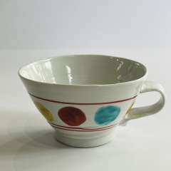 【多田鐵男】赤コマ紋様クルリスープカップ