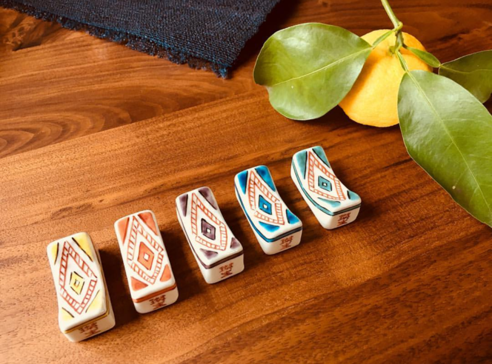 ![]() 美陶園の小さなスターを紹介します。 九谷五彩を使った箸置きは旅の思い出にぴったり。 石畳文様は古くからの九谷焼の文様で親しまれてかましたが、今回九谷五彩(赤、青、黄、緑、紫)で箸置きを作りました。 5色あるので、器の色に合わせたり、シンプルな器でもテーブルコーディネートのアクセントになります。 お友達やご家族のイメージカラーごとに贈り物にされる方もいらっしゃいます。石川県の思い出も詰まった嬉しいプレゼントになるのではないでしょうか。 <石畳文様箸置セットhttps://shop.bitouen.jp/item_A7583.html |