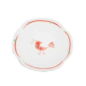 【瑛生】 葉を加える鳥文様木瓜三・七寸皿