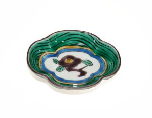 【萌窯】色絵松竹梅文様三寸輪花皿