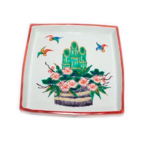 【瑛生】 松に梅文様隅切四寸角皿