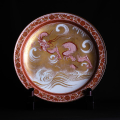【北山雲平】赤絵龍文様金彩大皿