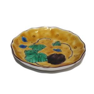 【瑛生】黄地白花文様五寸輪花皿
